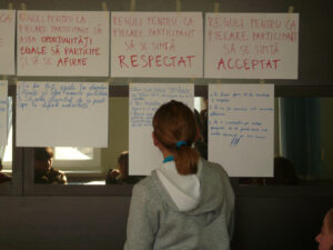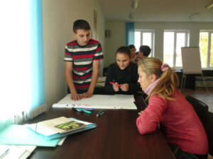 Grupurile de Lucru din cele 11 localități sunt formate din câte 2-3 elevi din aceeași clasă/școală, fiind sprijinite și coordonate de un adult (profesor de educație civică, director educativ sau psiholog) din localitate.