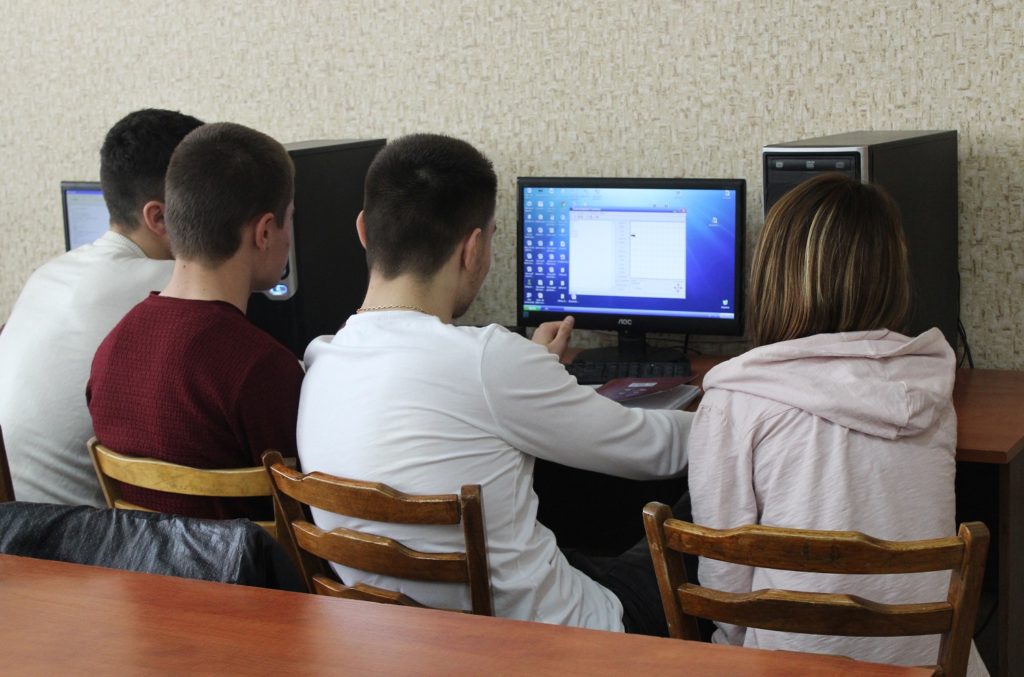 Elevii sunt impuși să lucreze câte mai mulți, 4-5, la un calculator la orele de informatică; totodată, în multe școli din mediul rural, copiii nu au acces la calculatoare și sunt nevoiți să învețe doar teorie. Autor: Cristian, membru al Grupului de Reflecție.