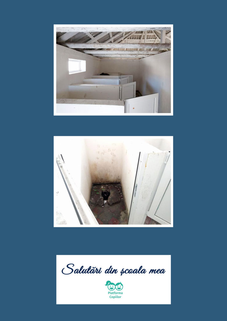 Unele școli dispun de WC în interiorul școlii, dar în majoritatea școlilor WC-le sunt situate în afara clădirii școlii şi nu respectă condițiile sanitare. Autoare: Daria, membră a Grupului de Reflecție.